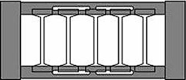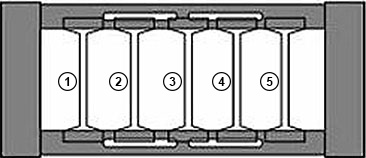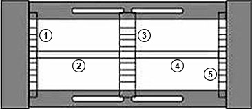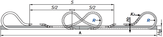 Zwei e-ketten® die gegenüberliegend in einer gemeinsamen Führungsrinne verfahren, werden "gegenläufig" genannt.