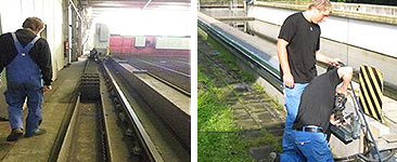 In ein vorhandenes Kettensystem werden neue Leitungen eingezogen.
