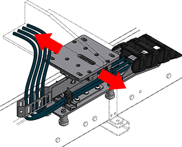 Bei starkem seitlichen Versatz während der Verfahrbewegung sorgt der schwimmende Mitnehmer für einen Ausgleich und somit für einen kraftfreien Lauf der Energiekette in der Führungsrinne. Dadurch wird insgesamt die Lebensdauer Ihrer Anwendung verlängert.