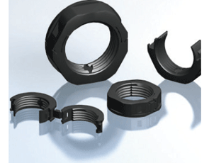 These split counter nuts, in conjunction with the TN screw connections, are excellent for smooth re-installation or repair in machine and plant construction. In addition, this product is becoming increasingly important in automotive construction and in building installation technology.