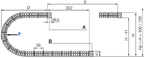 K = Zugschlag für Biegeradius bei der e-ketten Längenberechnung in mm
