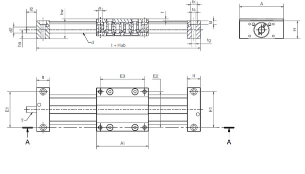 | Bestellnummer | A | Al | H | E1 | E2 | E3 | l | hw | f | lt | tk | ts |