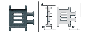 Zugentlastungstrennstege werden im ersten oder letzten Kettenglied montiert. Für eine "Zwischen-Zugentlastung" können sie auch alternativ in der e-kette® montiert werden.
