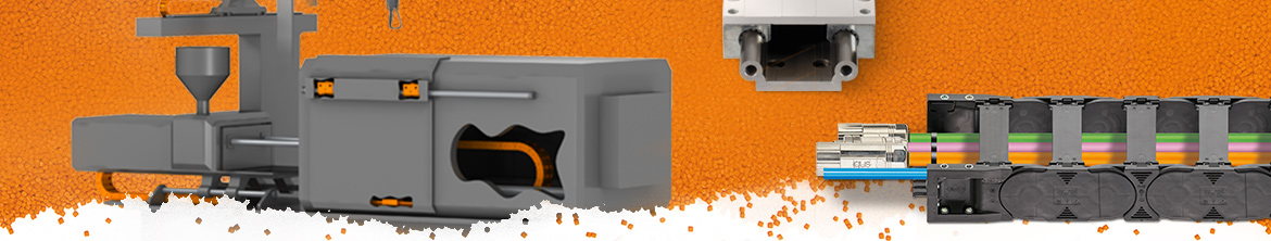 Bei der Energiezuführung an Maschinen für die Verarbeitung von Kunststoffen sind hohe Zusatzlasten, Genauigkeit und hohe Temperaturen wichtige Schlagwörter. In Blasfolienanlagen, Spritzgußmaschinen oder Extrudern führen und schützen Kunststoff-Energieketten die Leitungen und Schläuche. Auch bei schweren Befüllungen spielen e-ketten® aus Kunststoff ihre Vorteile aus: