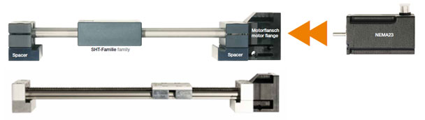 „Verheiraten“ Sie Ihren Motor schnell und einfach mit den wartungsfreien drylin® Lineareinheiten. Spacer, Motorflansch und Kupplung bilden den Bausatz für den unkomplizierten Anbau Ihres NEMA23.