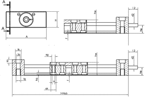 Linearführung und Spindelmutter komplett schmierfrei. Kompakter, flacher Linearaktuator für Hand- oder Motorantrieb, auch für den Dauerbetrieb und höhere Dynamik geeignet.