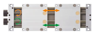 Die SLWT-1080 Doppel- Lineareinheit bietet ein hohes Maß an Flexibilität. Sehr fl ach und kompakt kombiniert der SLWT zwei Lineartische in einem Aufbau. Jeder Schlitten ist in der Einheit getrennt steuerbar.