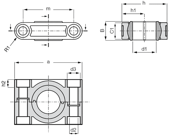 d2 | d3 | h | h1 | h2 | a | m | b | R1 | max.