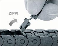 Blitzschnelles Öffnen und Schließen mit Zipper e-ketten® und e-rohren - Zipper e-ketten® überzeugen durch ihre Praktikabilität und Leistung. Durch die "Reißverschluss"-Funktion wird die Montagezeit verkürzt. Die kleine Teilung, das robuste elastische Zipper-Band und die strapazierfähigen Glieder verblüffen bei hohen Beschleuni-gungen. Die Zipper-Serie ist eine der beliebtesten igus® e-ketten®-Serien der anspruchsvollen Industriebranchen.